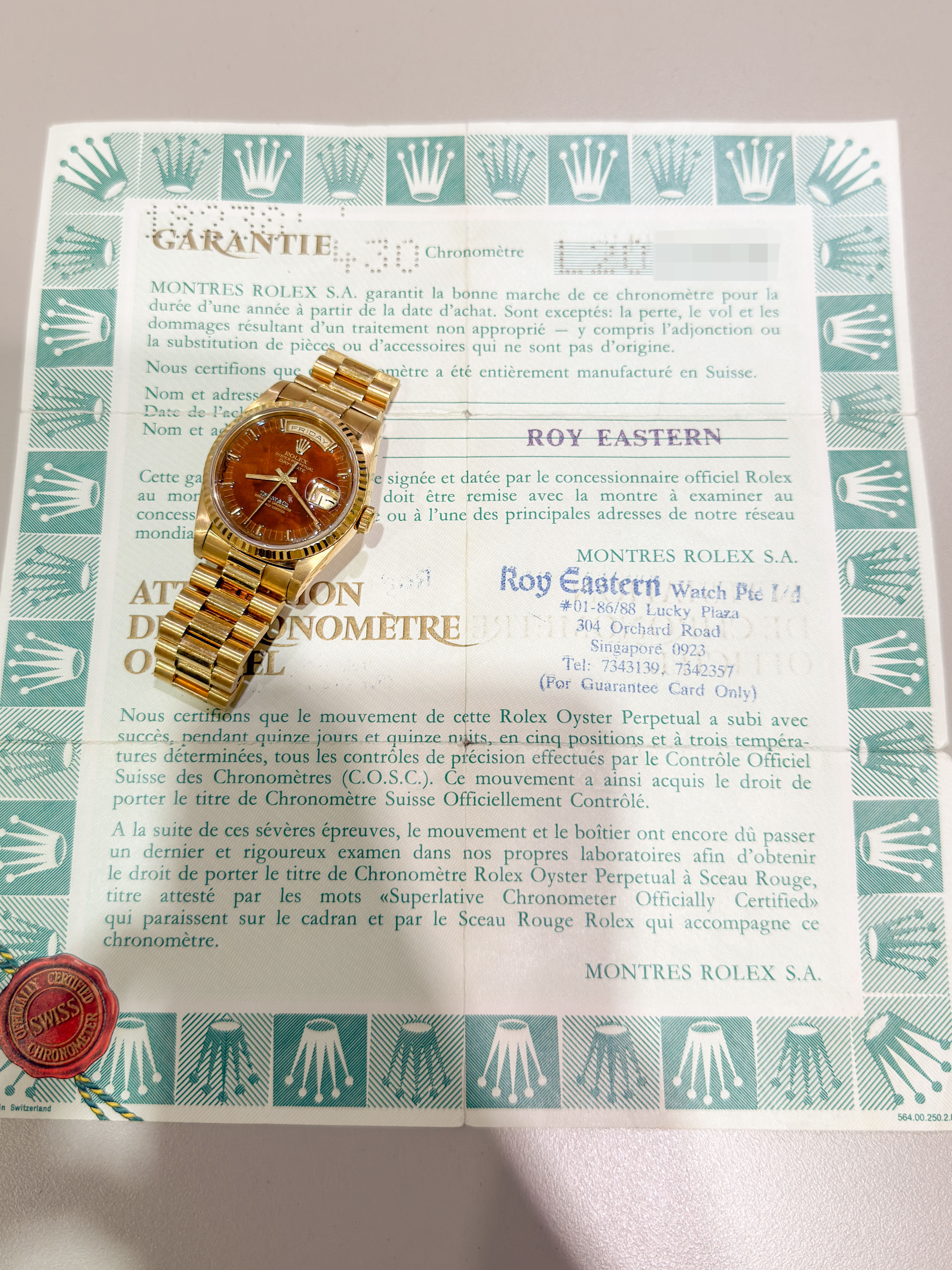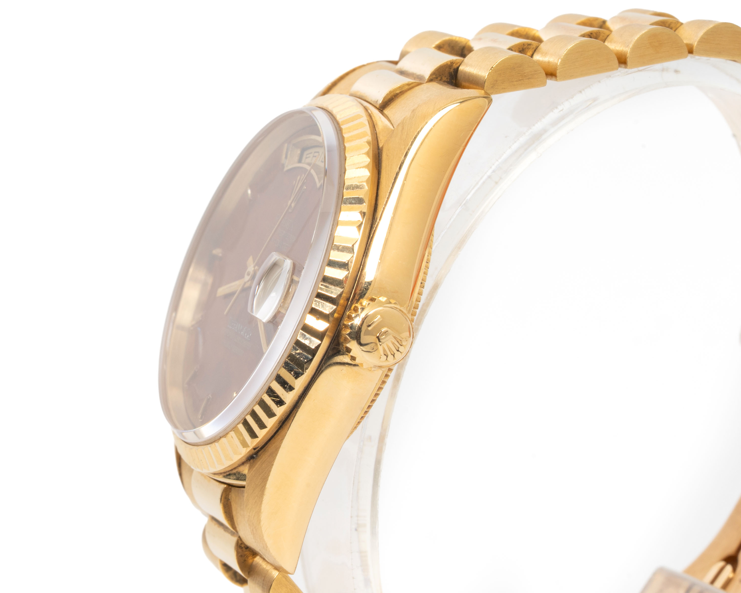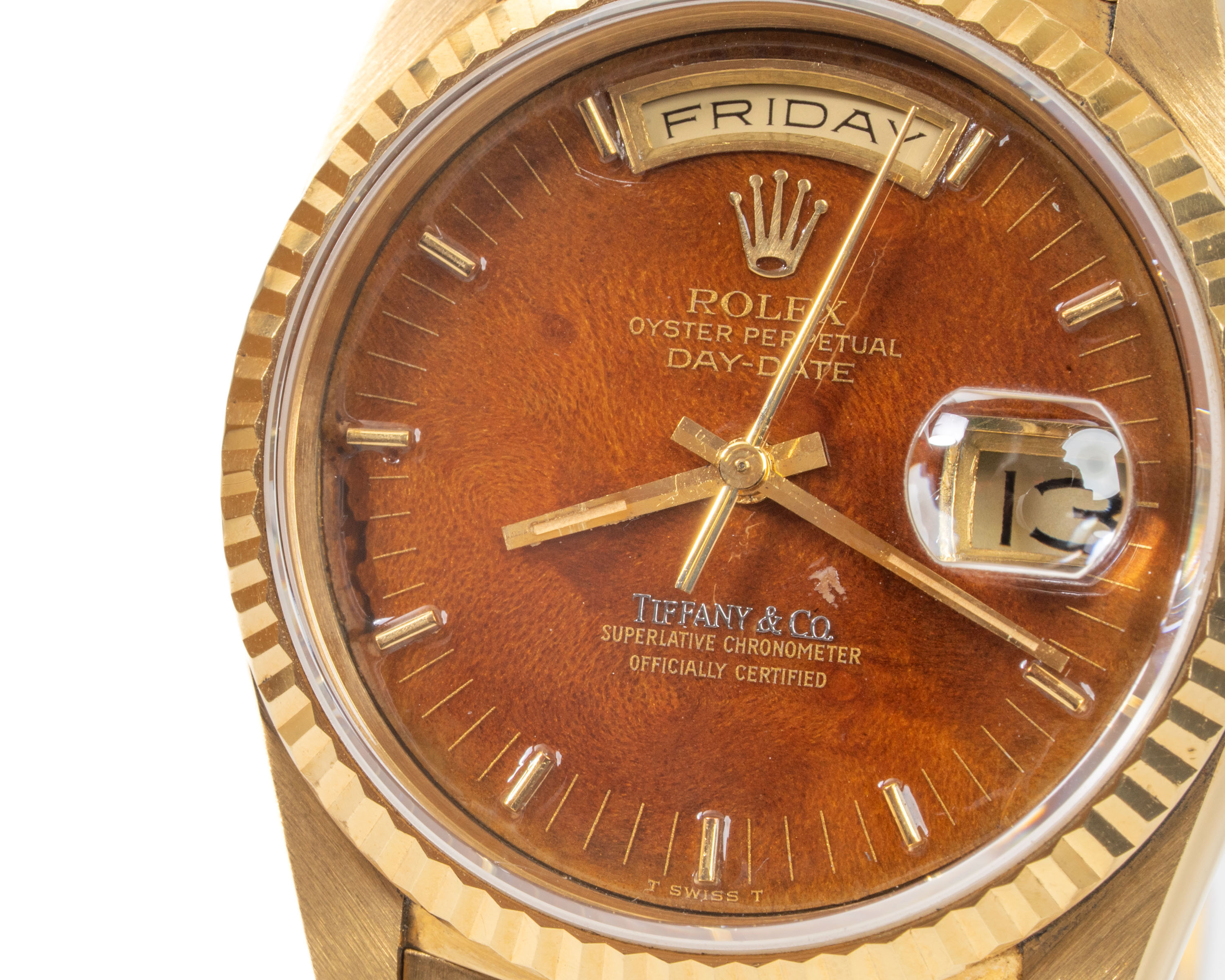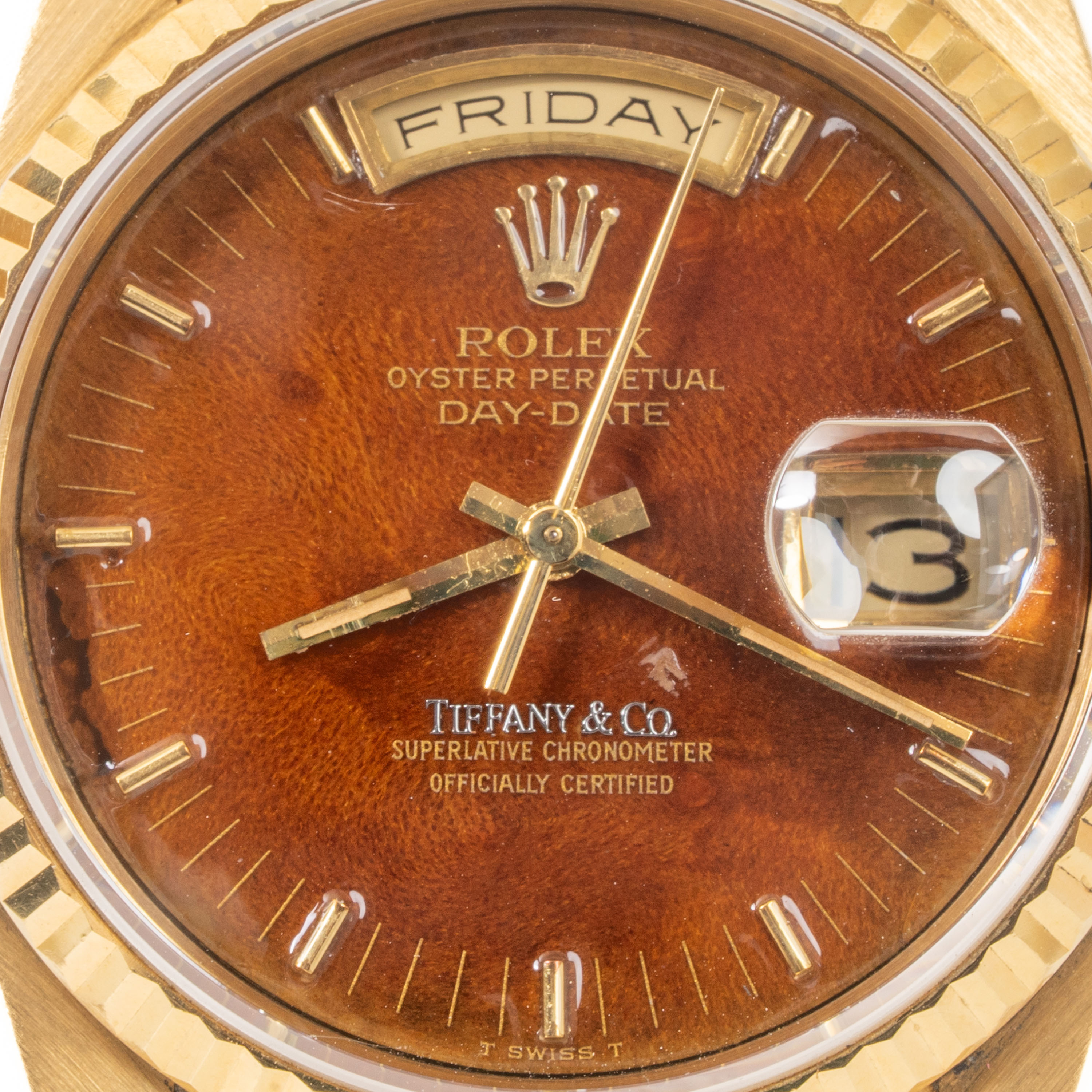 【拍賣會級別劳力士】Rolex/勞力士 Daydate 星期日历型 Ref.18238 Tiffany.co蒂芙尼 Wood Dial 木紋盤 K18黃金腕錶 #jp28810