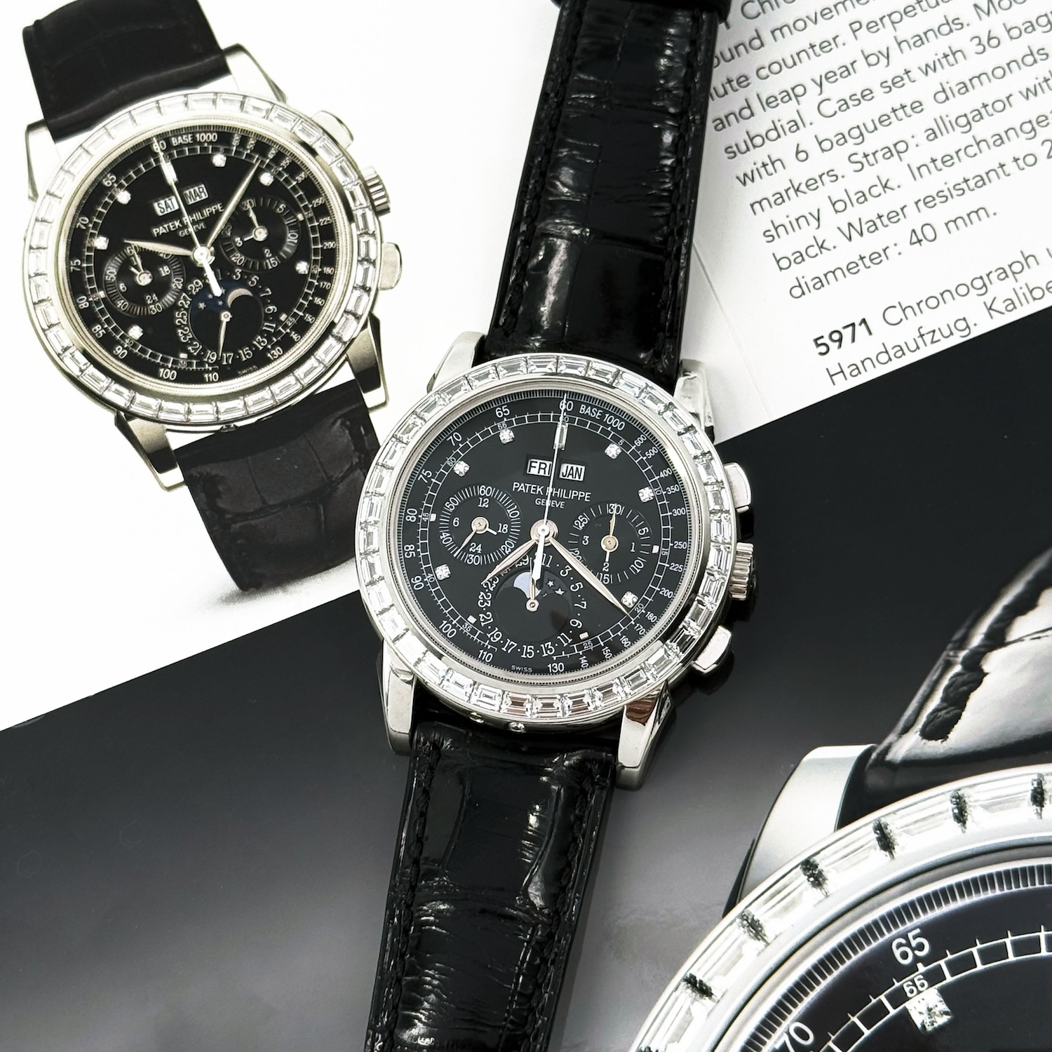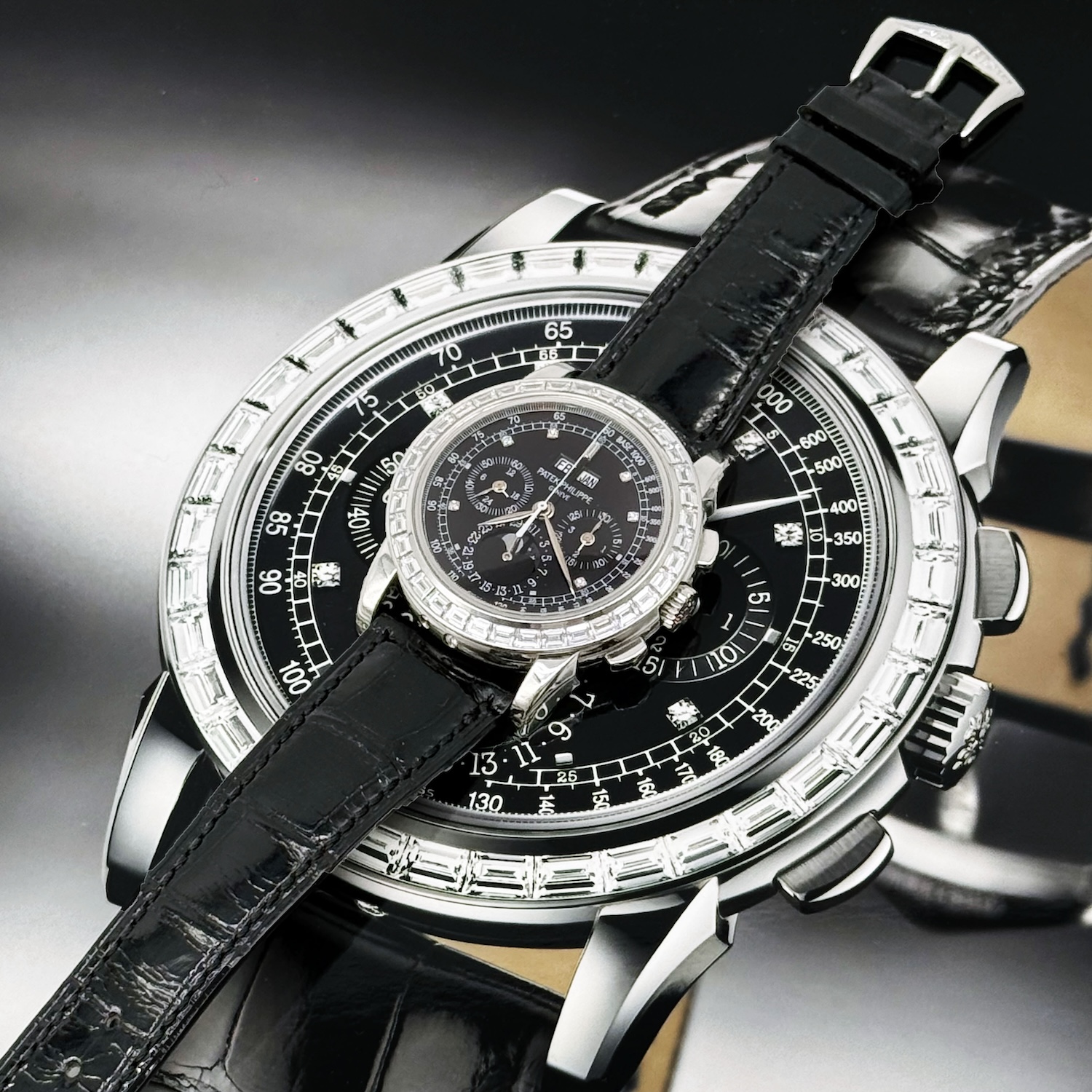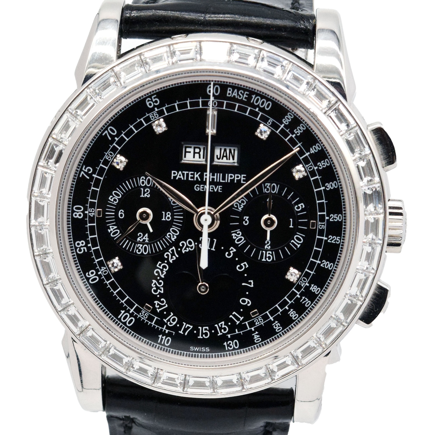 Patek Philippe/ 百達翡麗  GRAND COMPLICATIONS 超級複雜功能時計 5971P-001 鉑金長方形鑽石萬年曆計時腕錶#HK11634