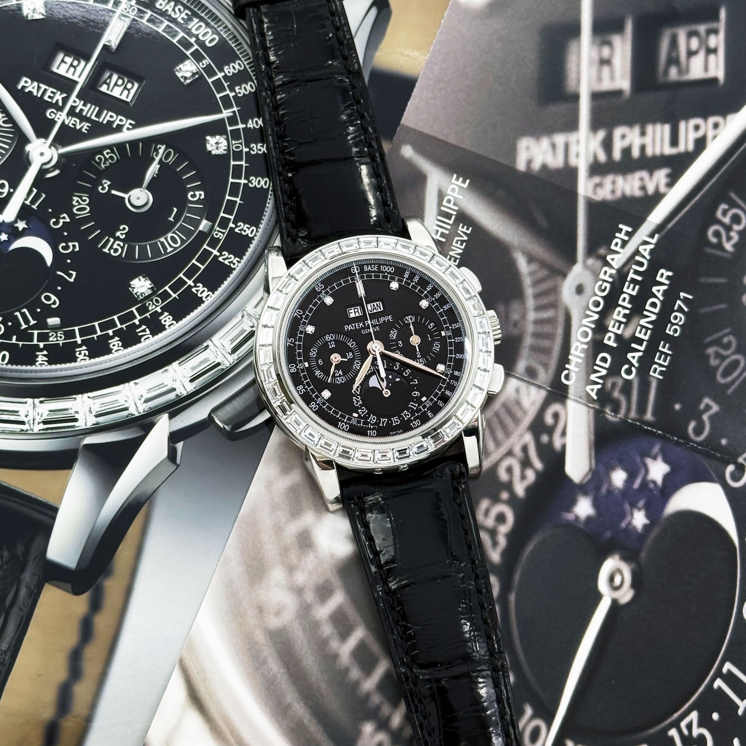 Patek Philippe/ 百達翡麗 GRAND COMPLICATIONS 超級複雜功能時計 5971P-001 鉑金長方形鑽石萬年曆計時腕錶#HK11634