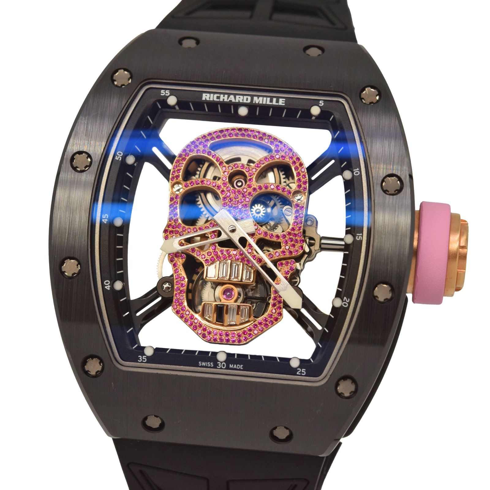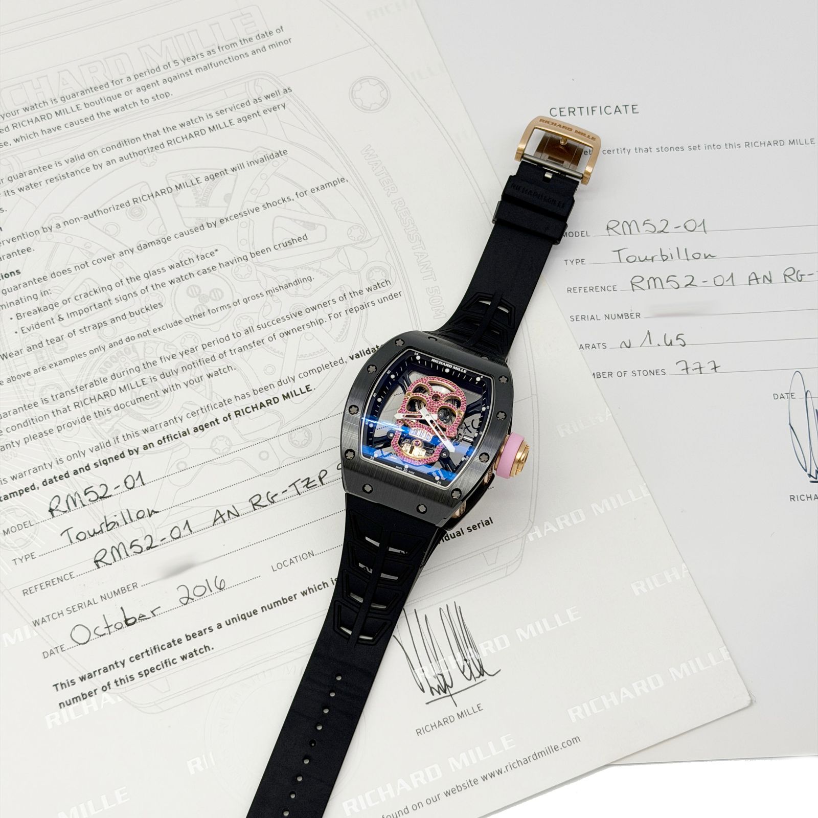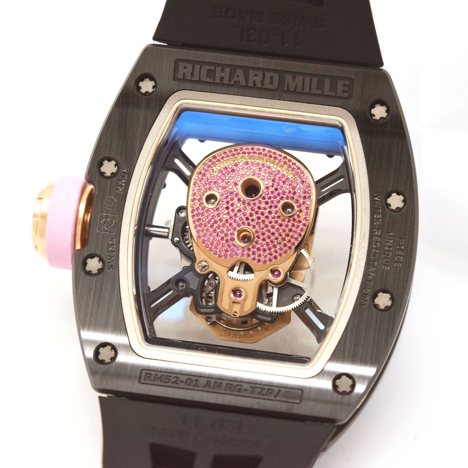 【UNIQUE PIECE】RICHARD MILLE / 理查德米勒  RM52-01 AN RG  黑陶瓷鑲鑽陀飛輪鏤空骷髏頭腕錶#HK11708