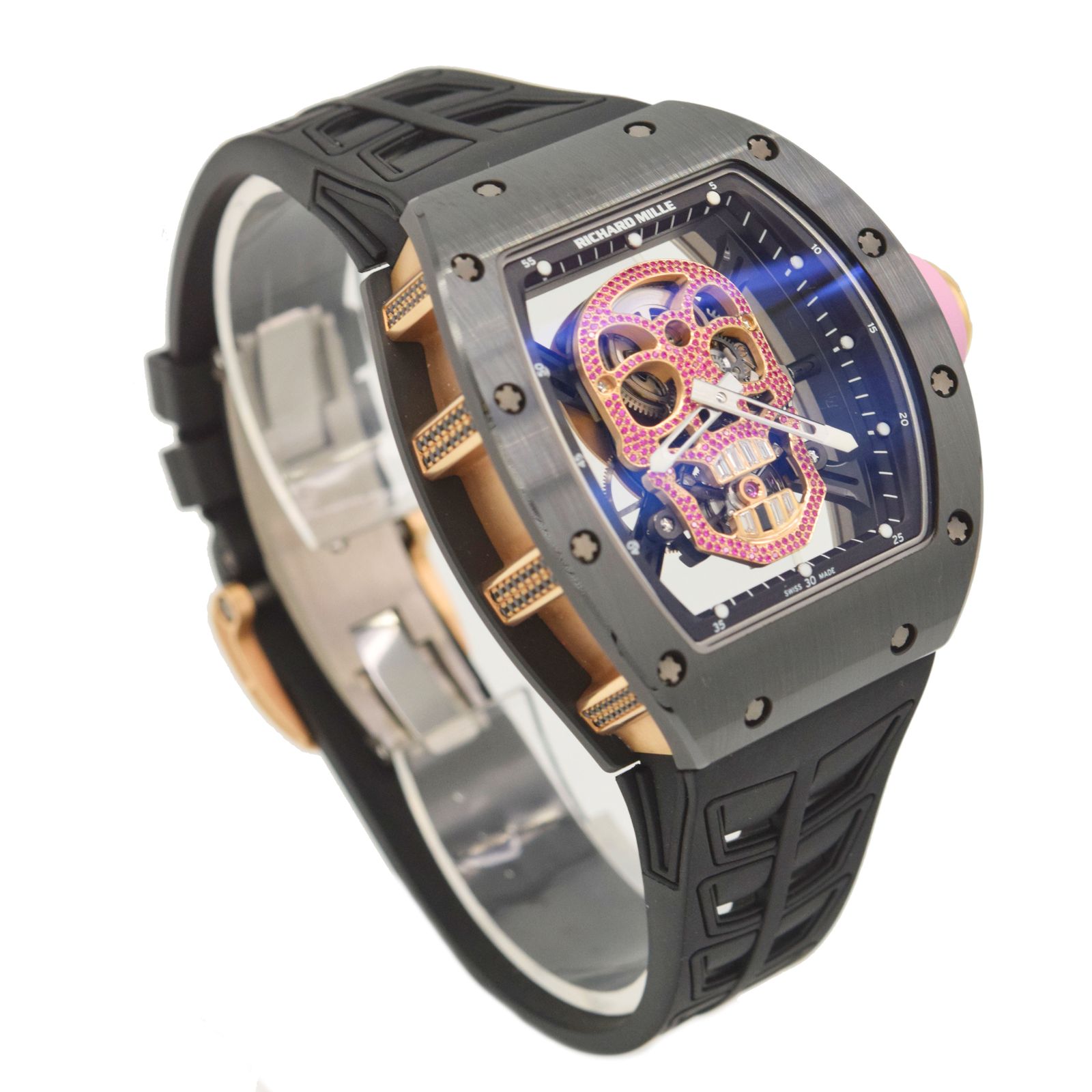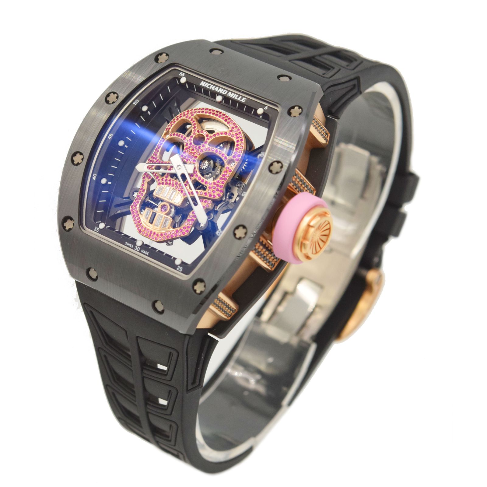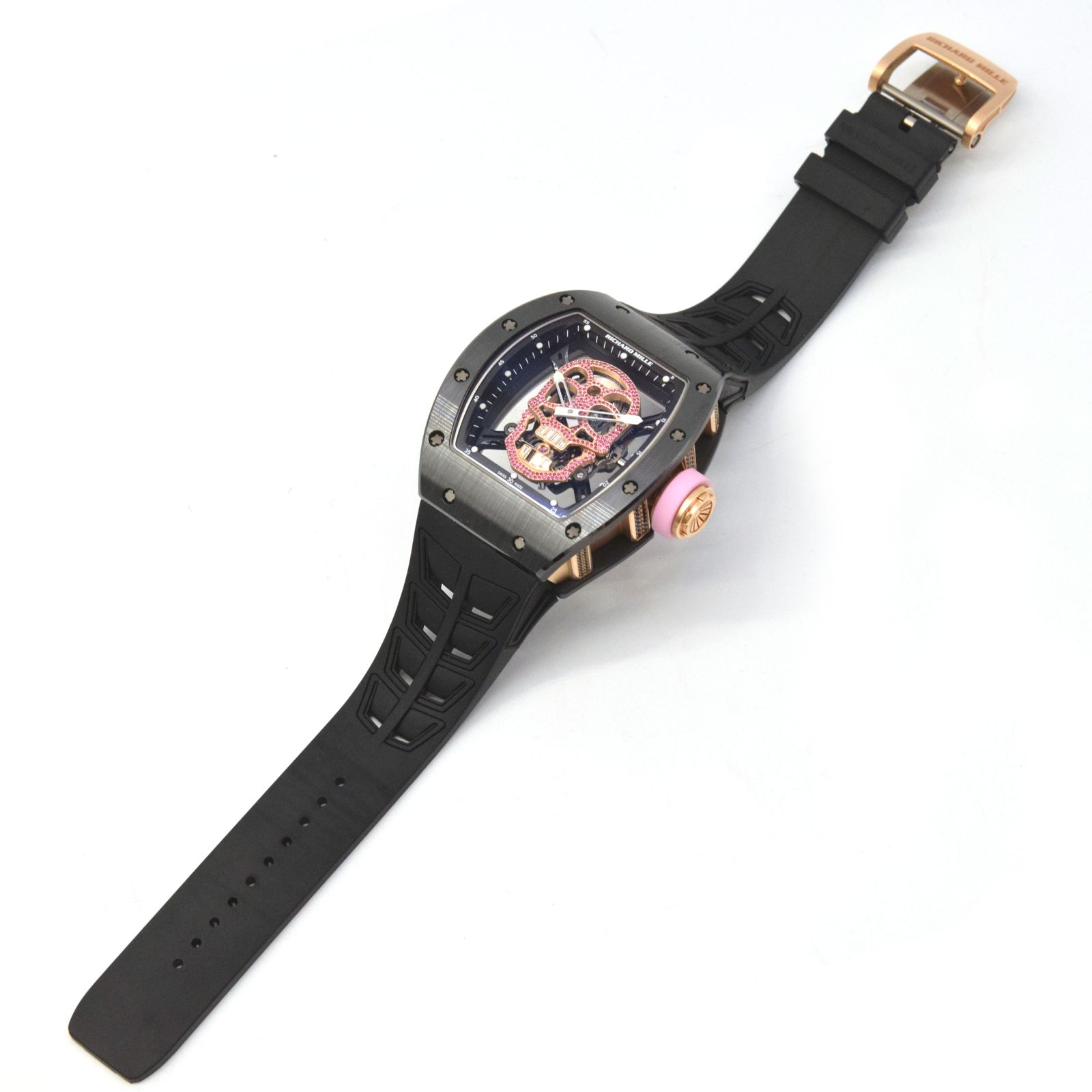 【UNIQUE PIECE】RICHARD MILLE / 理查德米勒  RM52-01 AN RG  黑陶瓷鑲鑽陀飛輪鏤空骷髏頭腕錶#HK11708